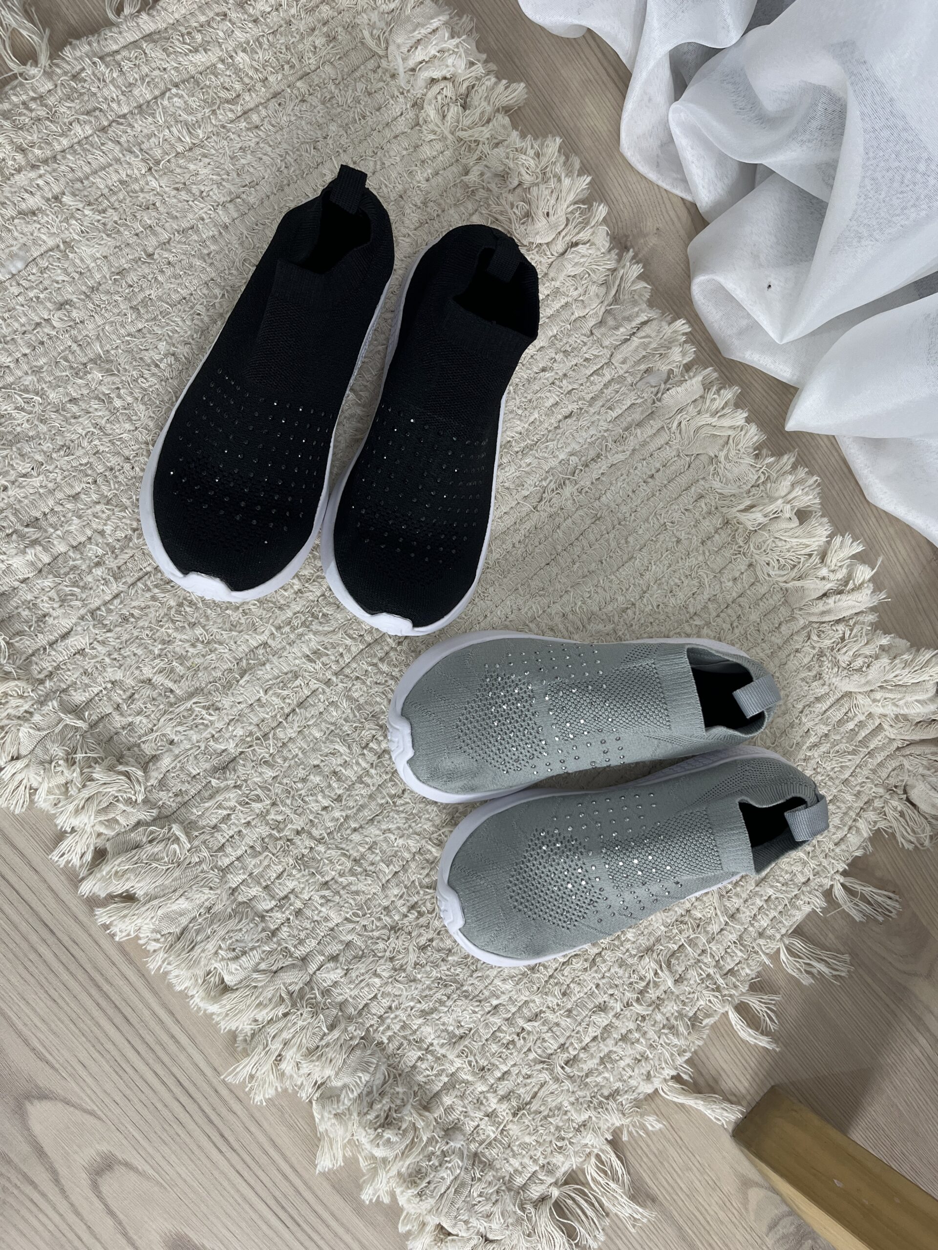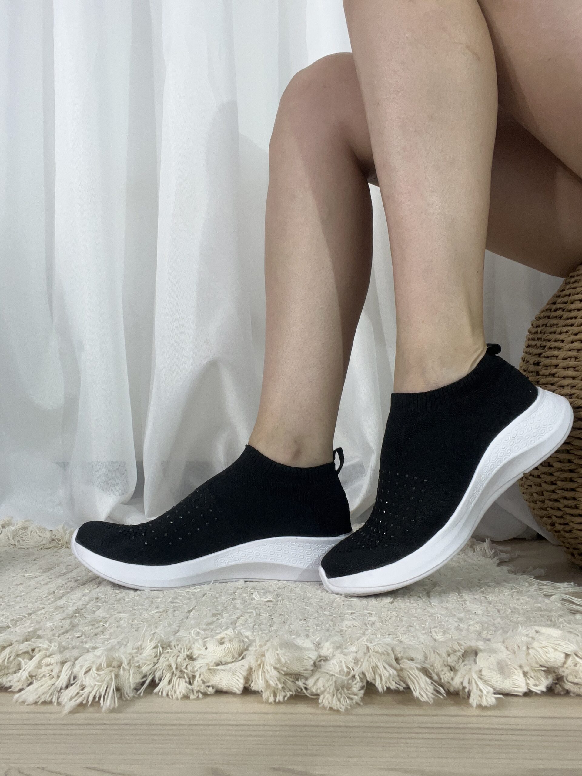 Zapatilla elastizada. Capellada tejido micro perforado. Tiene strass. Horma normal. Base eva, super liviana.