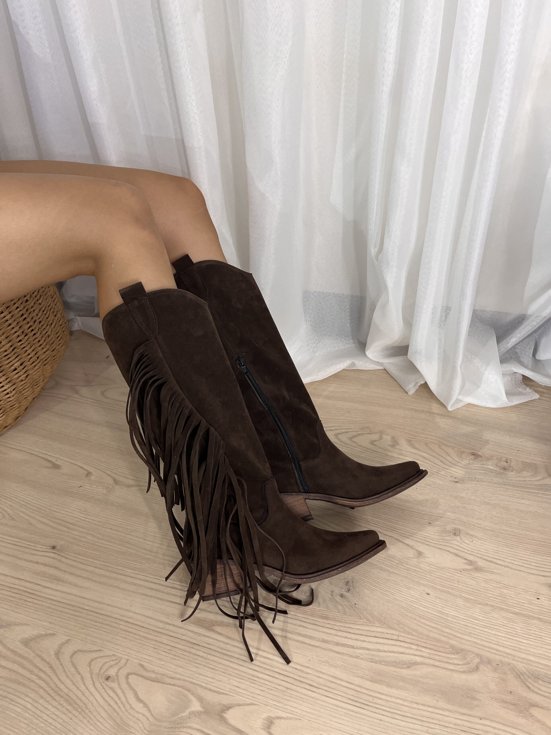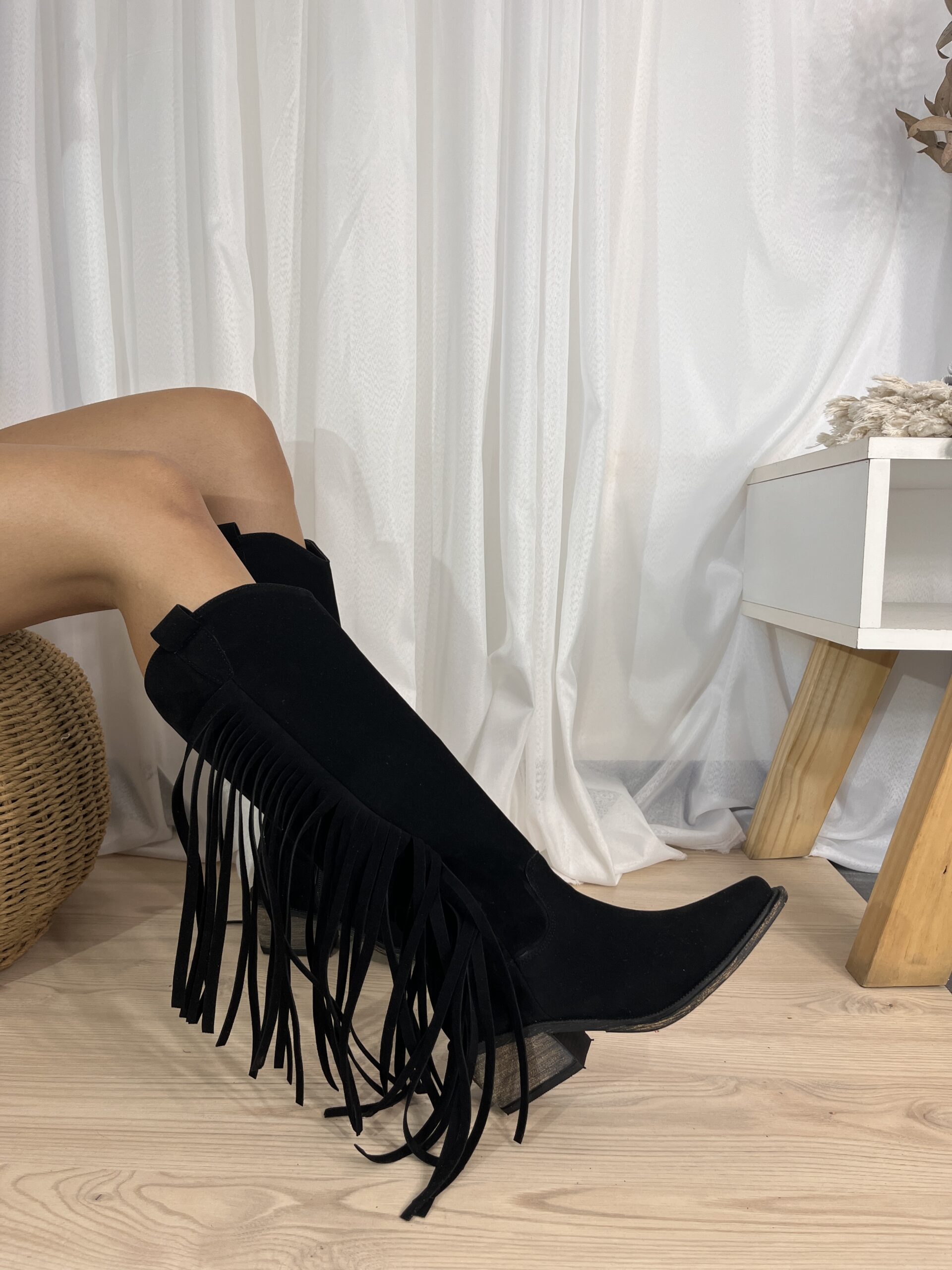 Horma normal. Base expanso, alto de 6cm. Capellada gamuza, largo de caña 36cm. Tiene cierre para facilitar el calce.