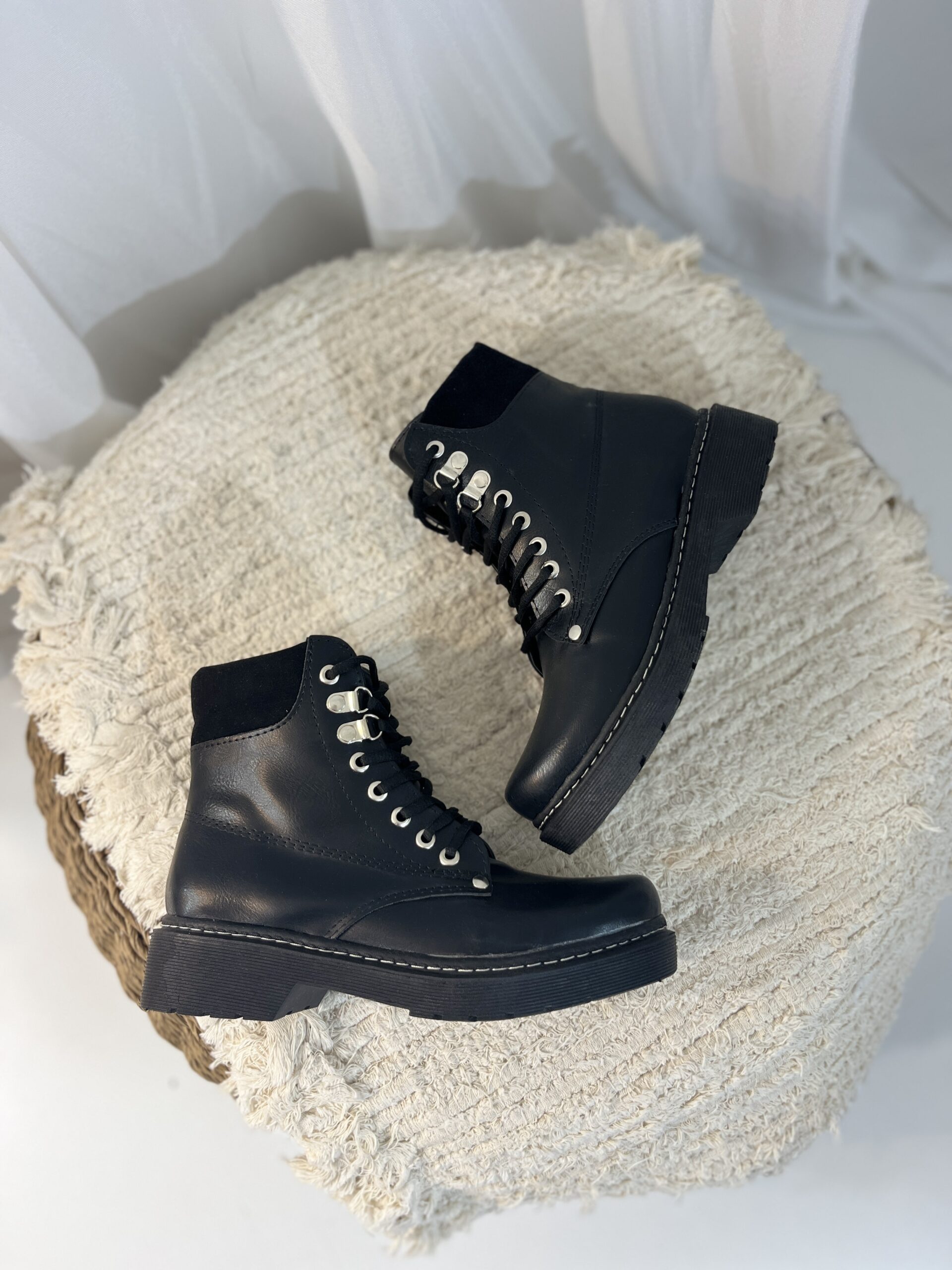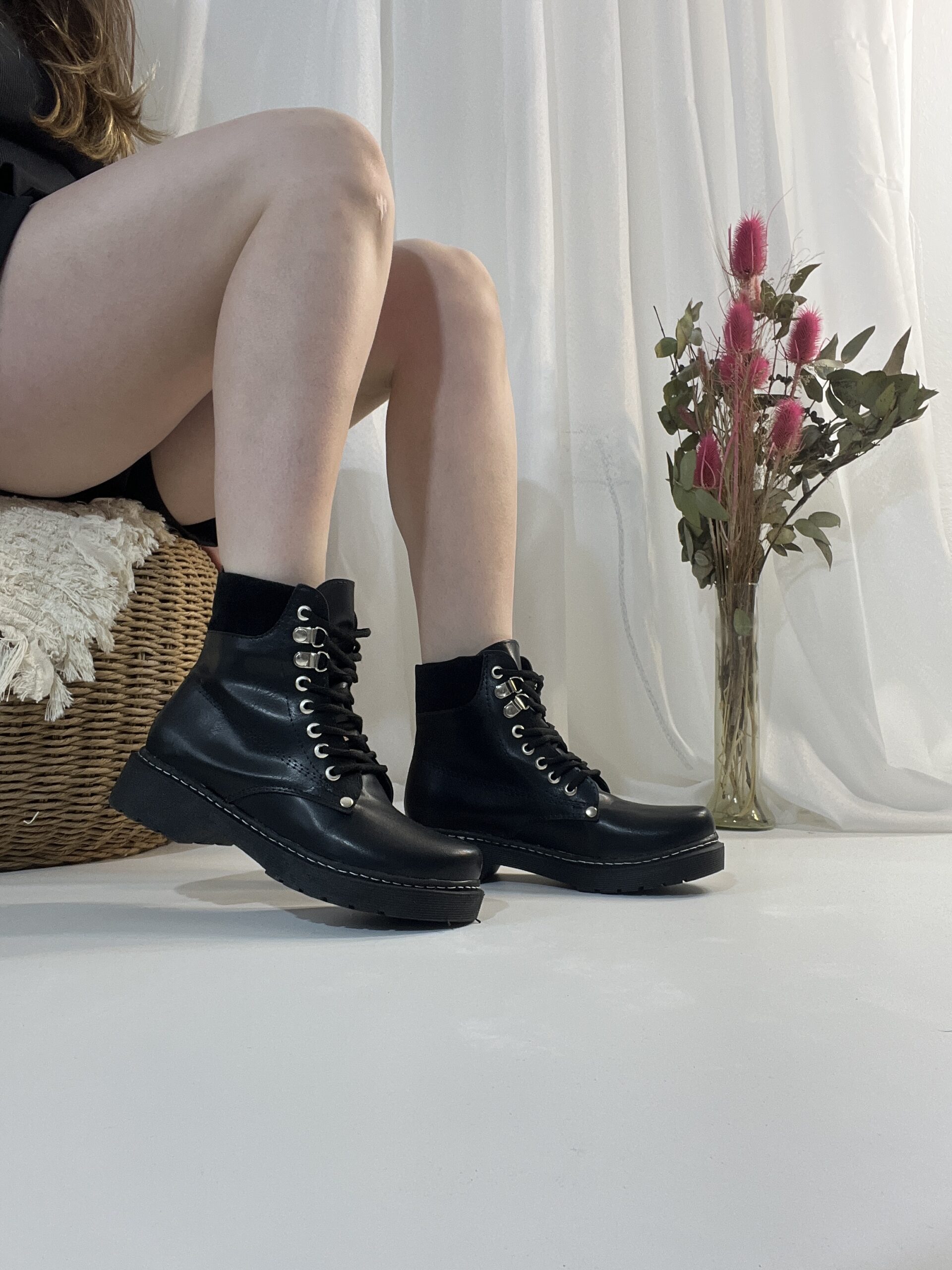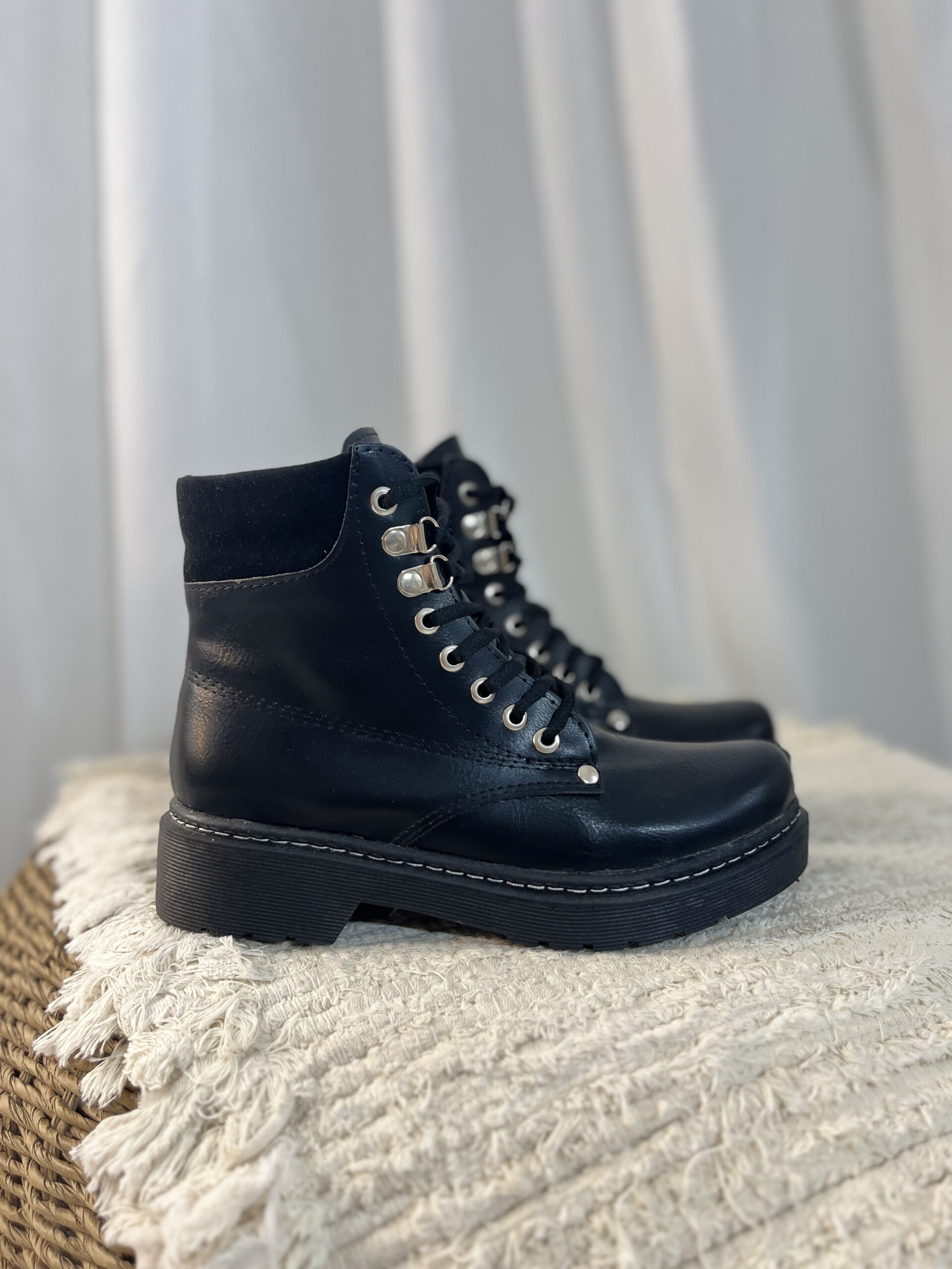 Capellada eco cuero y gamuza. Talles 35 al 40. Base expanso de 3,5cm. Largo de caña 13cm. Forrería acolchonada. Liviano y cómodo. Horma normal.