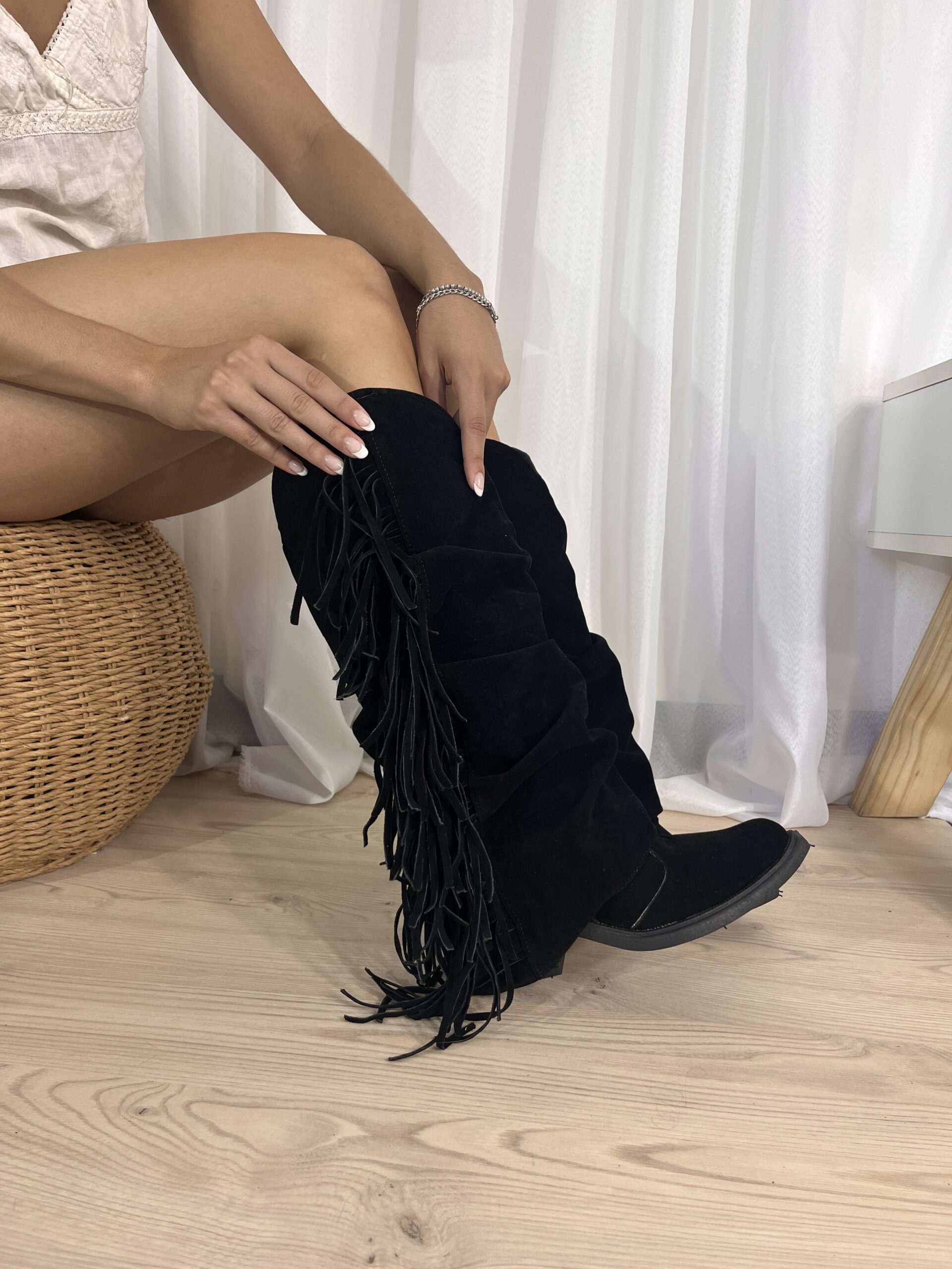 Capellada gamuza, largo de caña 36cm. Base expanso, liviana y cómoda. Alto de taco 5cm. Horma normal. Tiene cierre para facilitar el calce.