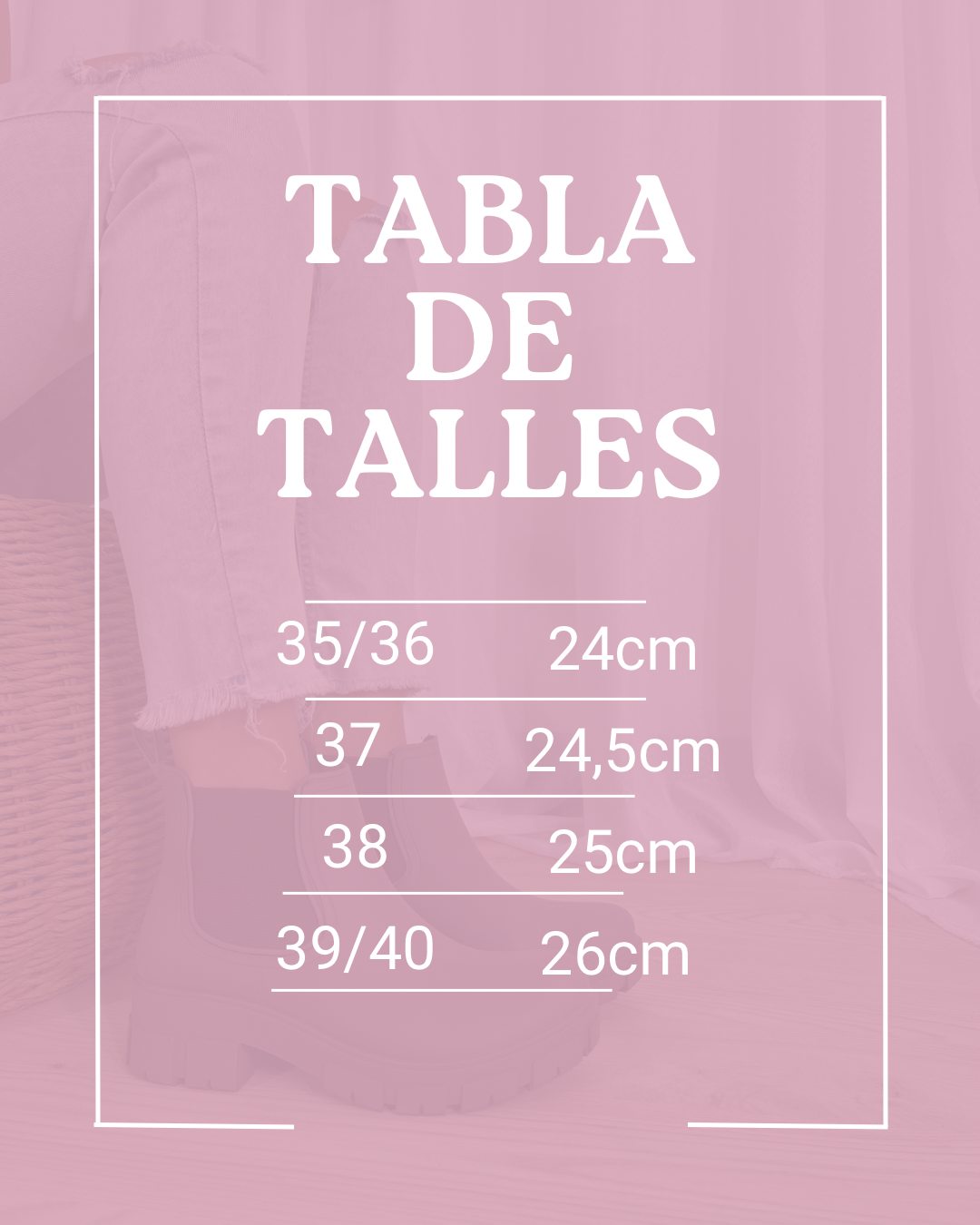 | Talle | 35/36, 37, 38, 39/40 |